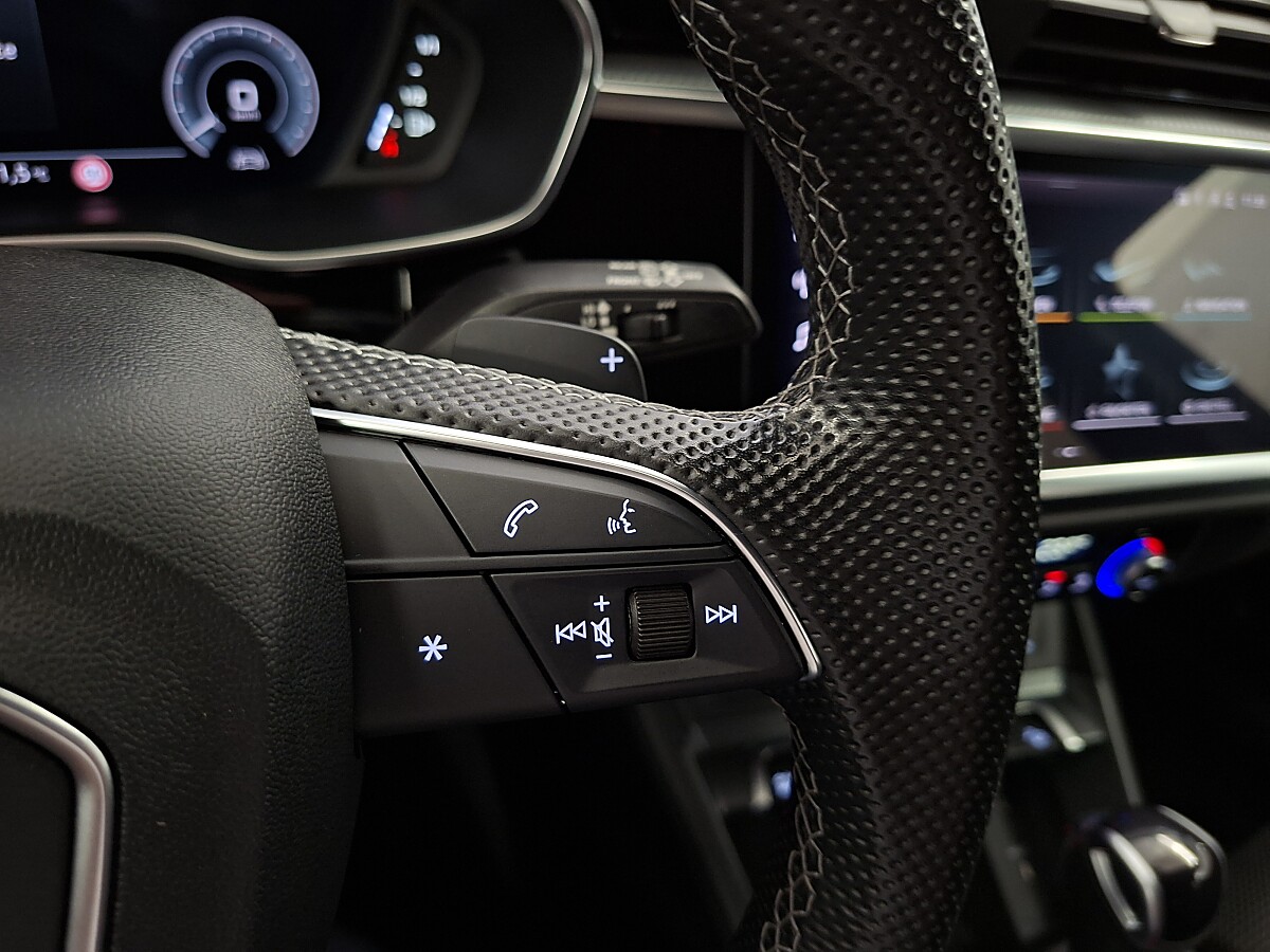 Sportkontur-Lederlenkrad, 3-Speichen, unten abgeflacht mit Multifunktion plus und Schaltwippen