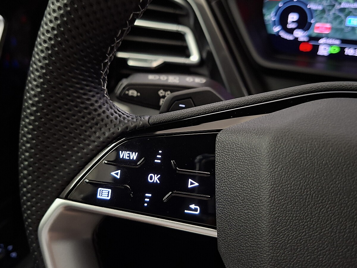Doppelspeichen-Sportlederlenkrad, oben und unten abgeflacht, mit Multifunktion und Schaltwippen