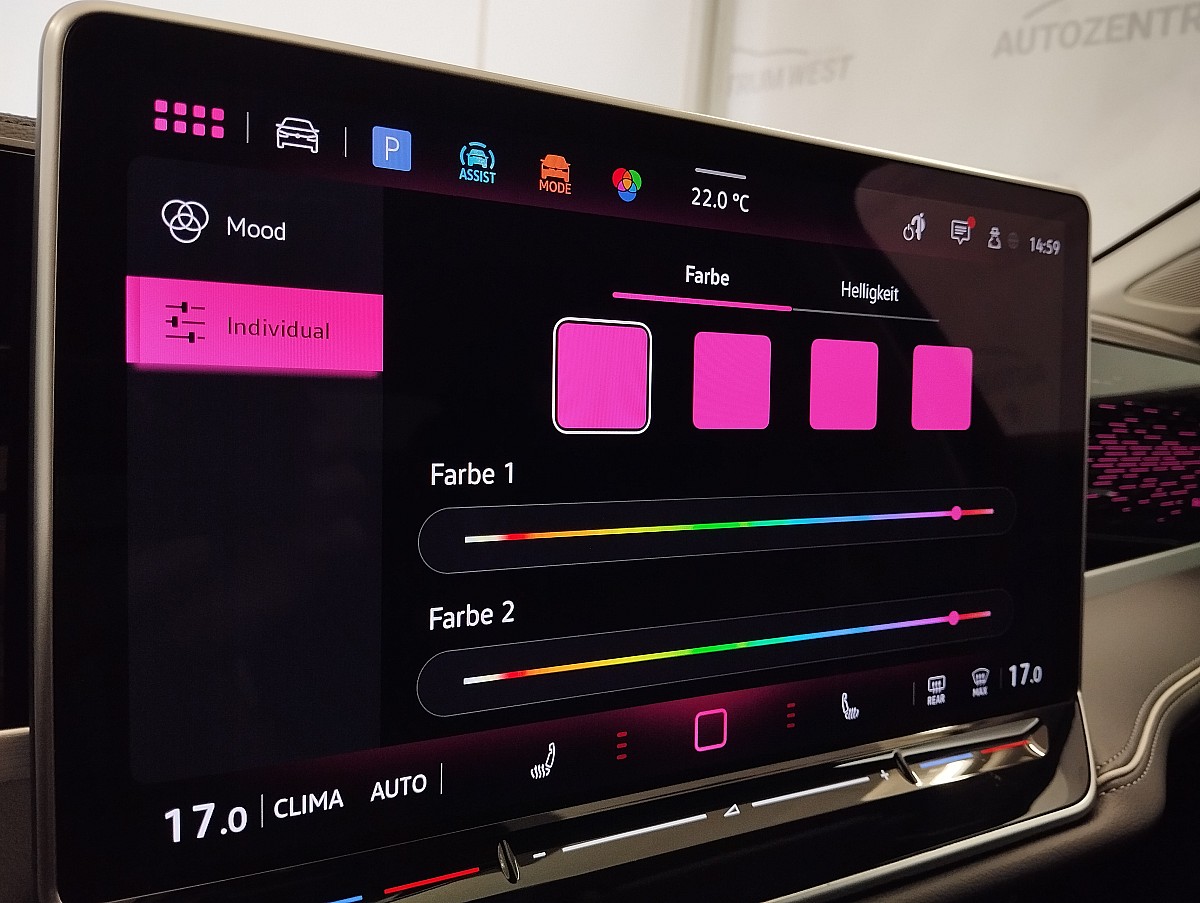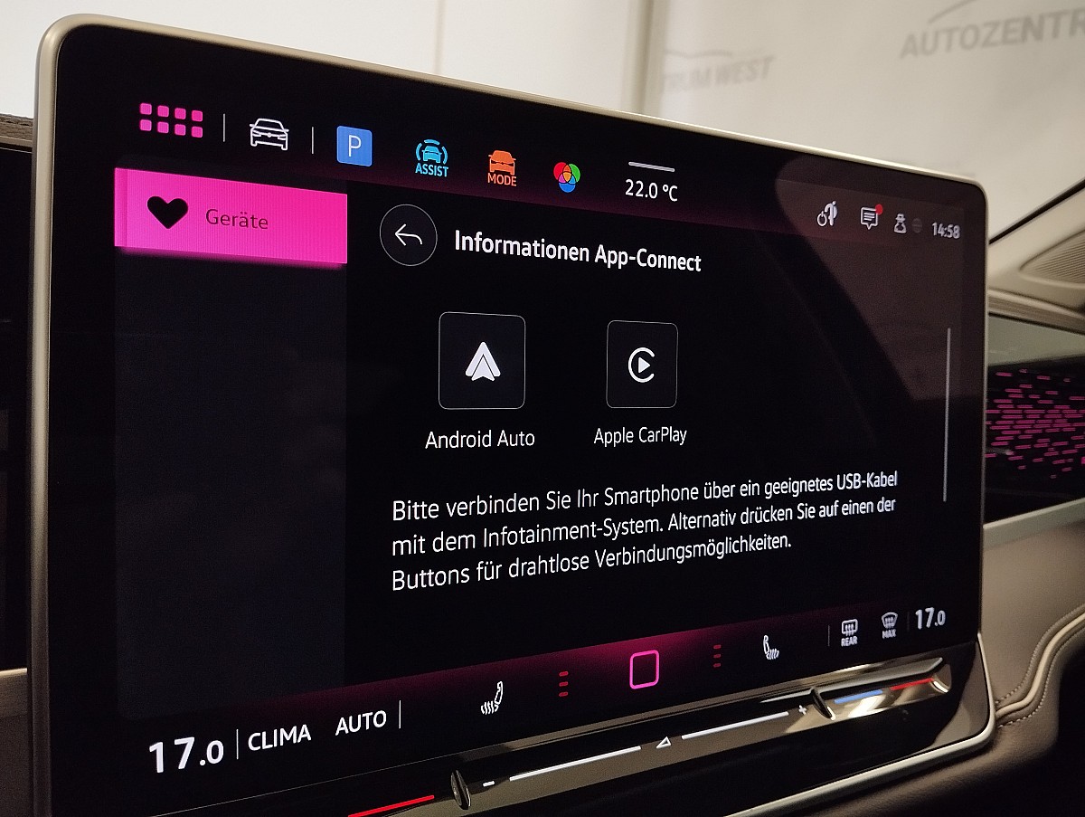 2 USB-C-Schnittstellen vorn, 2 USB-C-Ladebuchsen an der Mittelkonsolehinten; Ladeleistung bis zu 45 W